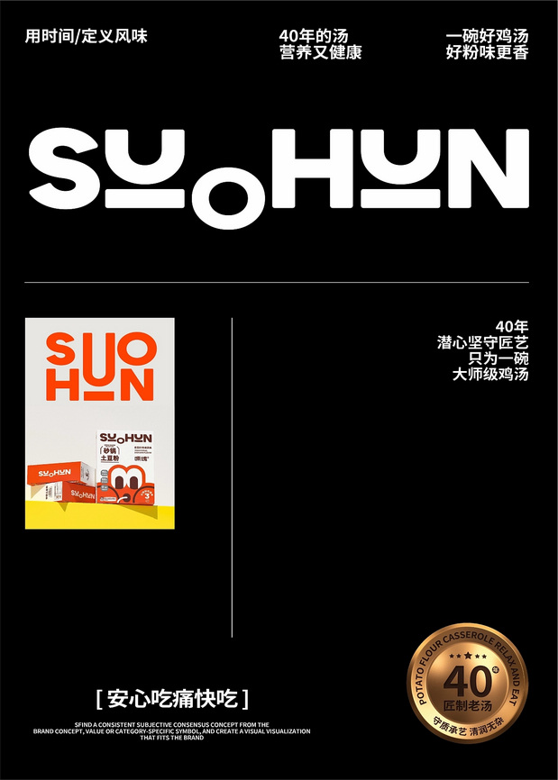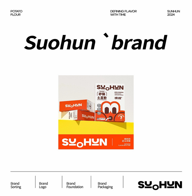 嗦魂土豆粉品牌全案设计 /><img fetchpriority= 项目名称/嗦魂土豆粉 项目地址/杭州 项目时间/2024-1 设计团队/ONEUIN万有引力品牌设计 BRAND GUIDANCE/大强 BRAND PLAN/大海 BRAND DESIGN/大强&之萌 3D DESIGN/闲鱼 Brand Frontier 年轻中产白领的速食面品牌主打土豆粉,配方主要在汤料上,源于上市公司佳隆集团的40年的配方,头汤一口乳魂;其次是Q弹土豆粉溯源河南手艺人纯匠心土豆粉。 The fast food noodles brand of young middle-class white-collar workers mainly focuses on potato flour, and the formula is mainly based on soup ingredients. It originates from the 40 year formula of the listed company Jialong Group, with a refreshing and creamy taste; Secondly, the origin of Q-shaped potato noodles can be traced back to Henan craftsmen who have pure craftsmanship in potato noodles.