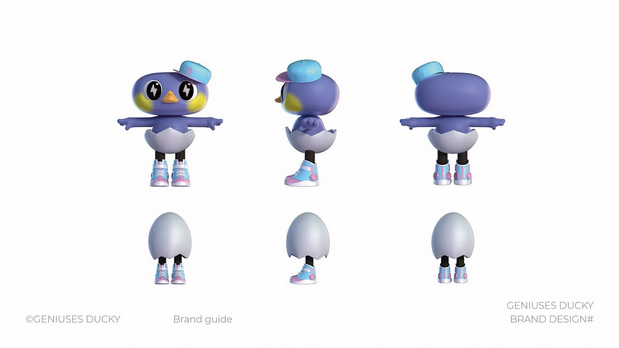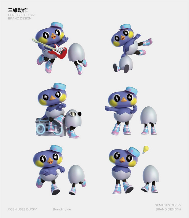 天才小鸭从孵化中找到灵感。设计了一对穿着蛋壳的兄弟,他们以奔跑跳跃、玩转才艺的动作,呈现灵动调皮的性格,而通体紫色脸上点缀的黄色腮红就是它的专属标志。天才小鸭用IP贯穿产品设计、门店装修及自媒体3D动画的运营,帮助大众快速认识品牌,降低沟通成本,现全网已在沉淀50万+粉丝。