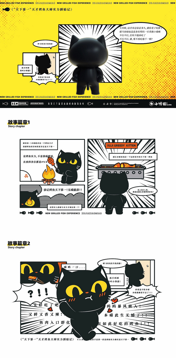 为徐记小馋猫炭火烤鱼连锁品牌店创作的IP形象,落地台州。 PS:很久很久以前……自称为天下第一烤鱼高手的小馋猫,发现自己的烤鱼厨艺不再精进,食不知鱼味,于是毅然离开家乡,寻找最美味的食物,却阴差阳错来到一家徐记烤鱼,震惊这里的烤鱼如此美味!为了得到烤鱼的秘方,小馋猫决定留下打工,从此一发不可收拾,还有了店里招财猫的称号。 —— Project:徐记小馋猫 IP Designer:宅系生物工作室&看鹿文化 创意设定:宅系生物/七七 插画:七七/若君/小寒 三维:宅系生物/阿彬/冬妮 Copyright:版权已注册,所有权归徐记小馋猫所有,请勿擅自转载挪用,内容可授权,合作意向请移步主页扫码联系。