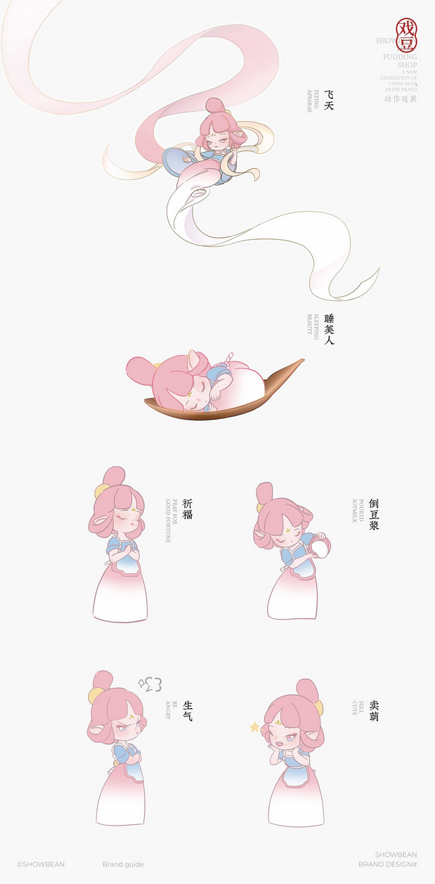 戲豆SHOW BEEN品牌视觉升级 /><img fetchpriority= 戏豆品牌视觉升级以”仙知鲜觉“为设计核心, 取碧落桃夭之色,塑造了一个调皮可爱、仙气灵动的IP形象——豆灵儿,以此衍生出片豆花的汤勺、仙境荷塘、祥云纹样等道具元素,呈现出人间仙境的视觉场景,颠覆传统古风, 用新的国风视觉更好的表达品牌理念,增强品牌的特色与识别性。 *部分贴图、摄影素材源自网络,侵删,仅为提案效果呈现,无任何商业用途。