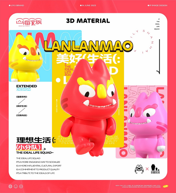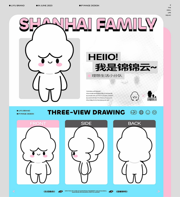 作为“里域脑洞工厂”的支持IP形象授权IP家族,理想生活小分队以传统布老虎玩偶、云朵和雨滴为创作灵感,将传统风格于潮流艺术相结合。以极简的形象表达IP身份与属性,兼顾视觉表现力和落地成本控制;更拥有更具亲和力于趣味性的形象设定,为后期的故事与形象延展留下开放式的创作空间。它们天生自带喜感、活泼开朗、风趣幽默、用乐观积极的态度帮助人们找回对生活的热爱,努力为世界带来风调雨顺、甜蜜温馨的理想生活。 项目服务 Project Service 丨 IP定位&IP设计&IP文创 项目时间 Project Time 丨 2023年6月 美术指导 Art Director 丨 Perry / 子维 插画设计 Illustration Designer 丨 子维 / 小熊猫beii / 三三 平面设计 Graphic Designer丨 伟智 / 睡一个觉 策划文案 Steategic Planing丨 力源 / Rex 三维设计 3D Designer丨 泰星