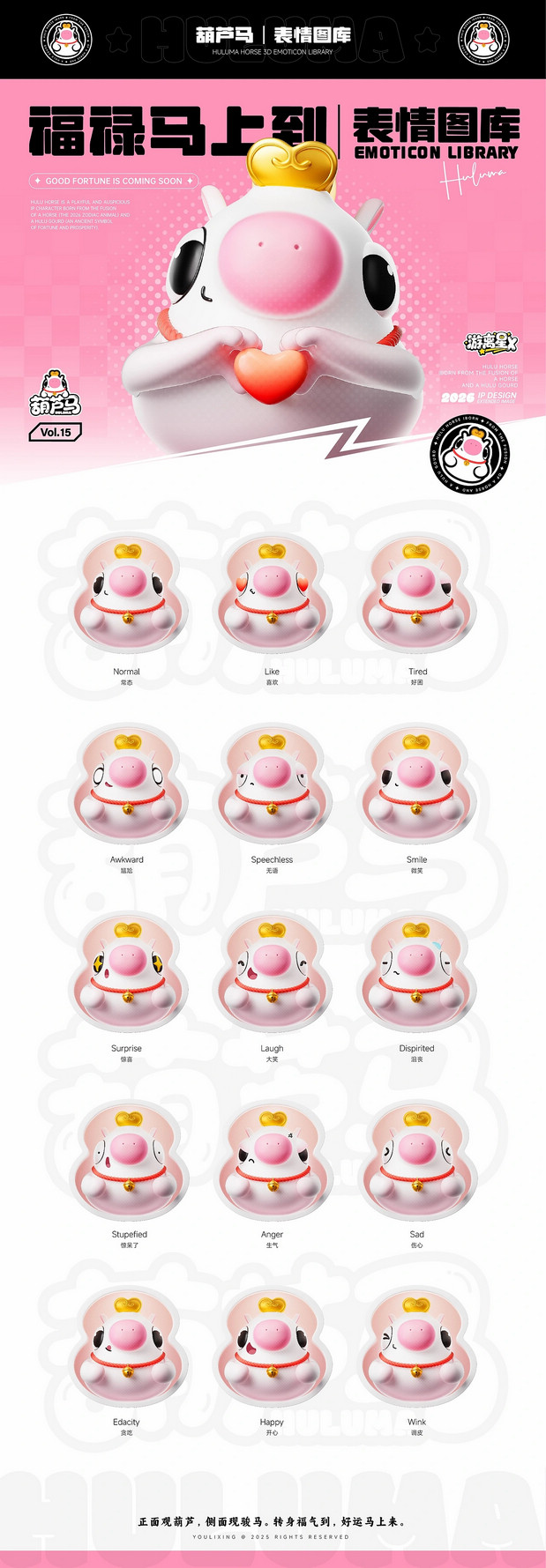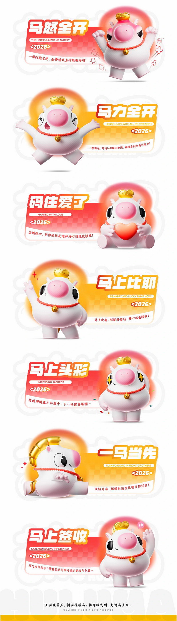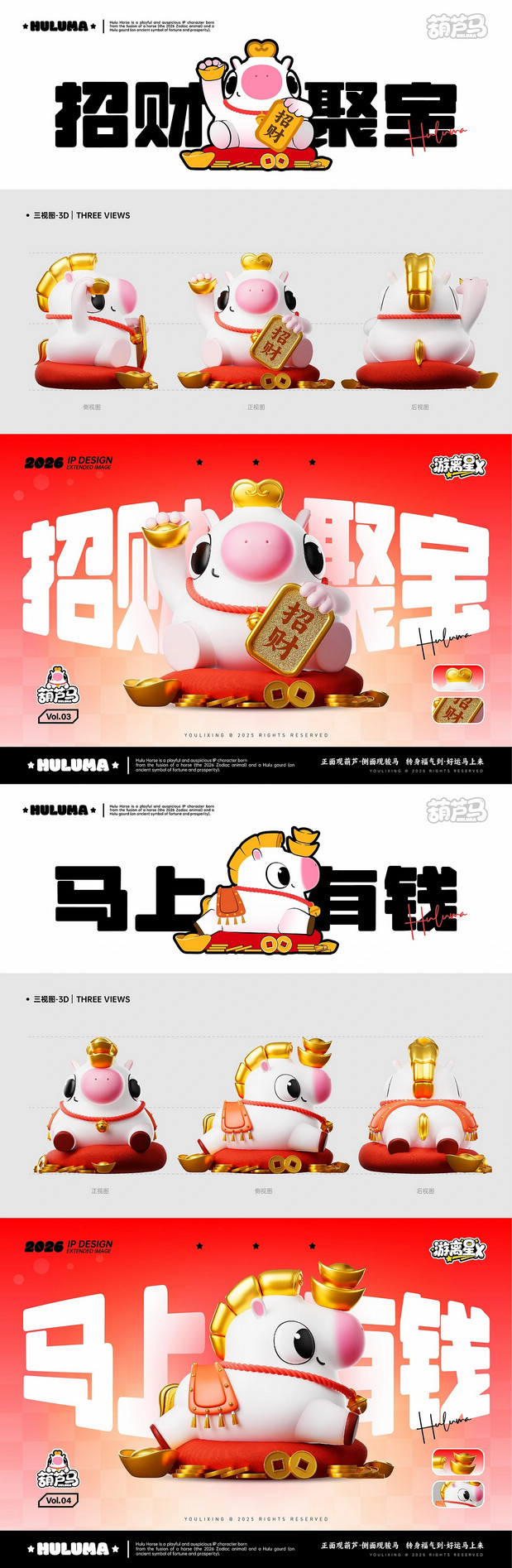 福禄马上到·马年IP形象 /><img fetchpriority= 正面观葫芦·侧面现骏马   转身福气到·好运马上来 正面看,它是圆润可爱的吉祥葫芦;侧面瞧,又能发现它藏着矫健白马的灵动线条。当你转动它,福气仿佛随之环绕;看它昂首跃起,好运便如腾云般扑面而来。这就是福禄马——既有葫芦带来的“福禄”寓意,又充满骏马的朝气与活力。愿这匹小马陪伴你的马年,福气满满,万事顺意。 IP Designer:游离星X 设计内容:平面 | 三维 | 产品 | 美陈 IP可授权,可买断(所有内容都可授权,授权后可根据用户需求调整,包括尺寸、颜色等…) 注:原创IP形象已注册版权,未经允许请勿私自转载商用等