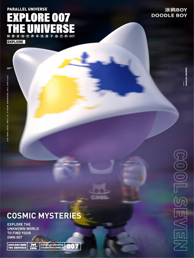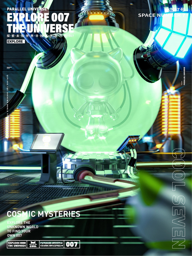 Cool Seven原创IP设计|潮玩设计 /><img fetchpriority= 背景故事浩瀚宇宙中有一个不知名的,未知星球;星球上生存着一个不知名生物,它拥有一双特别大的眼睛,一双类似猫的耳朵,面带微笑,是一个带着正义创造的猫星人,因为猫星球上就它一个生物,感到孤独;它成功制造出能以自身为标准的机器,去不断研发,让整个星球生机勃勃,但是研发过程中发现需要不断的能量源;为了寻找这未知的能量源,去了许多星球从未找到,得知地球有未知能量波动,酷七来到了地球。为了不被人发现自己不是地球生物,它带上了一个酷酷的头盔。地球一个有趣的星球,酷七在地球寻找能量源的过程中也不断学习地球文明,从而让自己变的非常有个性。某一天,酷七又发现了能量波动,来到了一个庞大的能量点,周围全是植物,空气也非常的新鲜,突然有藤蔓缠绕住了酷七,但非常的亲切,非常的舒服;因为这亲切又舒服的特殊感让酷七意识到,原来并没有什么能量源,而是因为自己的不断研发,星球环境遭到了破坏,能量源也不断枯竭;酷七明白后回到自己的星球,保护星球环境恢复能量源。从而让星球生机勃勃,也不在孤独。