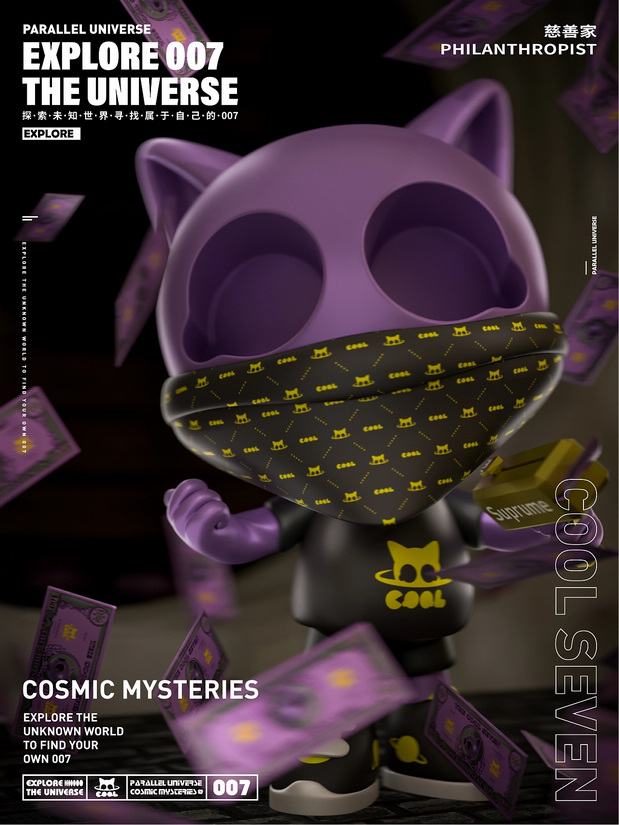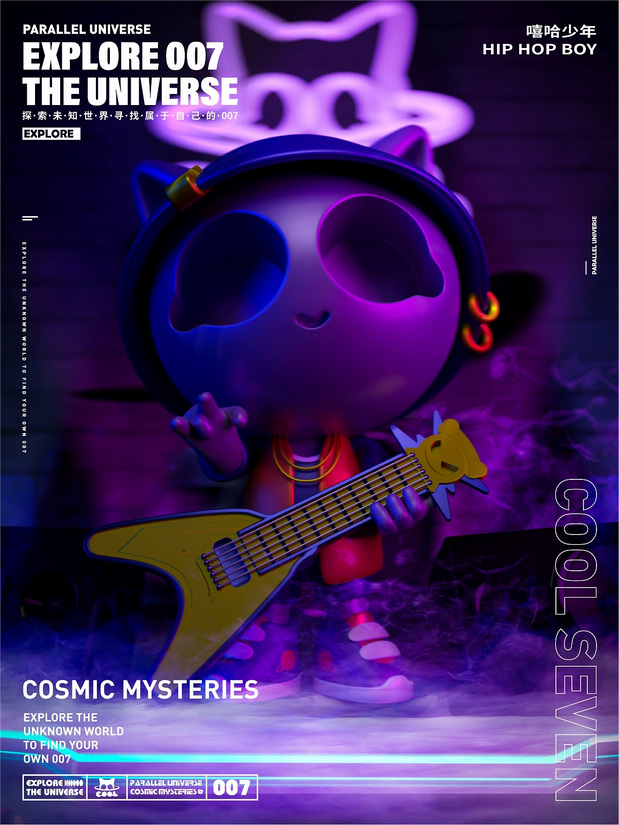 Cool Seven原创IP设计|潮玩设计 /><img fetchpriority= 背景故事浩瀚宇宙中有一个不知名的,未知星球;星球上生存着一个不知名生物,它拥有一双特别大的眼睛,一双类似猫的耳朵,面带微笑,是一个带着正义创造的猫星人,因为猫星球上就它一个生物,感到孤独;它成功制造出能以自身为标准的机器,去不断研发,让整个星球生机勃勃,但是研发过程中发现需要不断的能量源;为了寻找这未知的能量源,去了许多星球从未找到,得知地球有未知能量波动,酷七来到了地球。为了不被人发现自己不是地球生物,它带上了一个酷酷的头盔。地球一个有趣的星球,酷七在地球寻找能量源的过程中也不断学习地球文明,从而让自己变的非常有个性。某一天,酷七又发现了能量波动,来到了一个庞大的能量点,周围全是植物,空气也非常的新鲜,突然有藤蔓缠绕住了酷七,但非常的亲切,非常的舒服;因为这亲切又舒服的特殊感让酷七意识到,原来并没有什么能量源,而是因为自己的不断研发,星球环境遭到了破坏,能量源也不断枯竭;酷七明白后回到自己的星球,保护星球环境恢复能量源。从而让星球生机勃勃,也不在孤独。