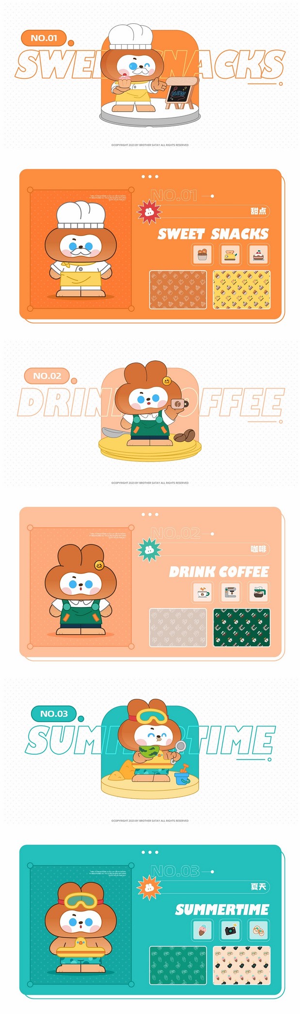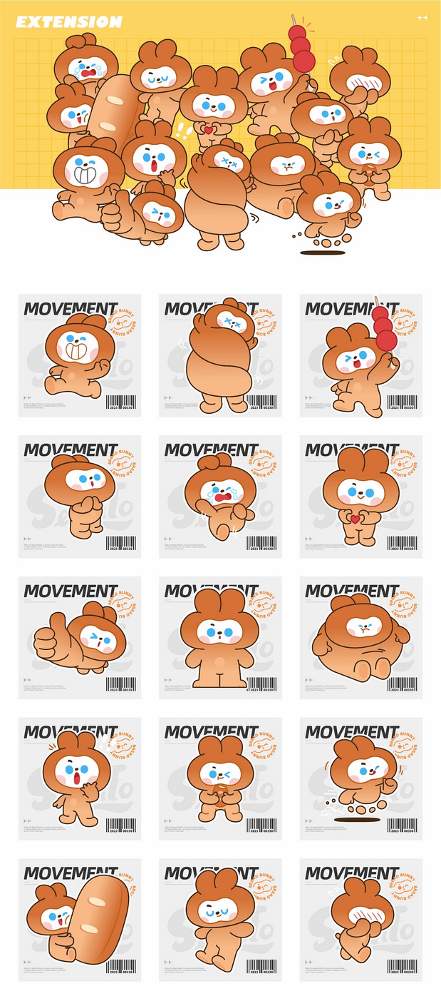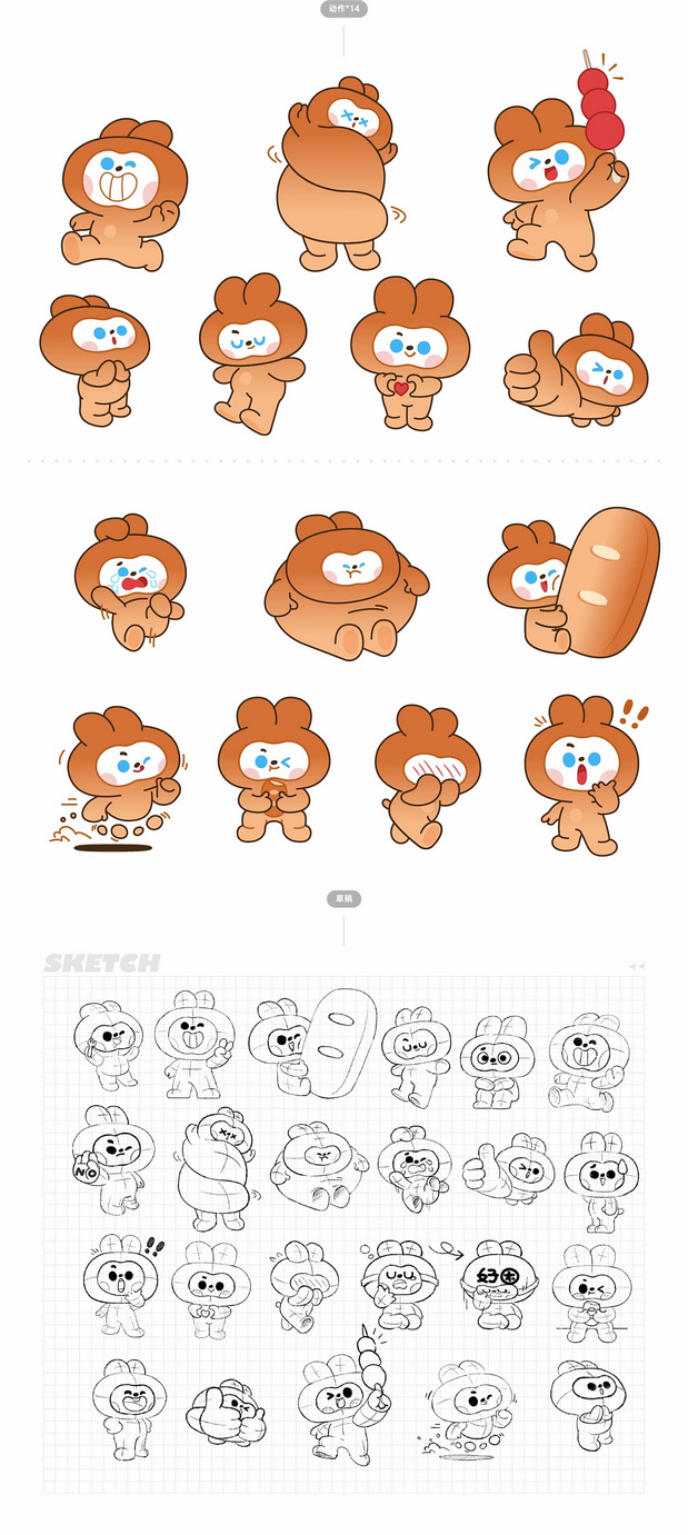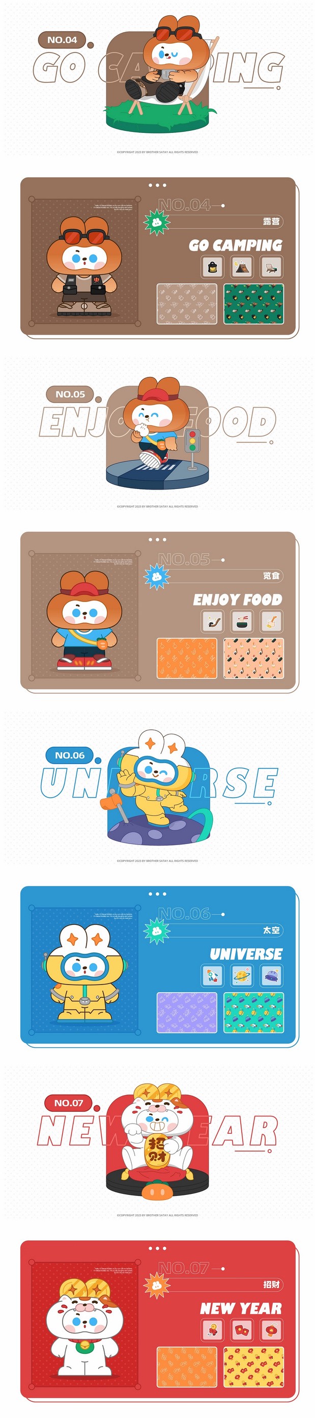 这套迟来的兔年IP形象是去年3月设计的草稿比较喜欢的一版形象,直到10月中旬利用空余时间去做,原本计划年前做完,但因为比较忙,直到现在才有空余时间把这个IP完善好,过程非常辛苦,但是等自己熬出来了也是很有成就感,也是记录这一阶段做IP形象的学习结果。 4月份开始学李舜老师和涅槃创设 (阿介老师)《IP形象设计全解实战班》的课程,到差不多也有一年时间,不过这套IP不是课程上的hhhh,课程那套还在调整和完善中,有时间会完成的 (下次一定),也感谢两位老师的指导和帮助,学完之后也让我不再处于迷茫焦虑的状态,让我在做IP形象有更多的想法和创意,三维上我也是第一次接触Blender,学完之后能实现自己好多不会的3d视觉,也正是这样打好的基础能支撑我完成这套IP的设计,虽然还有很多不足,但我会继续努力创造更好的作品,也感谢同班好鸽们ID:萌该皮不皮 (帮我解答了自己不会的3d知识) ,也希望其他IP同学能继续加油,但也要注意身体,话不多说,看图(兔)↓ 使用软件:Ps、Ai、Blender