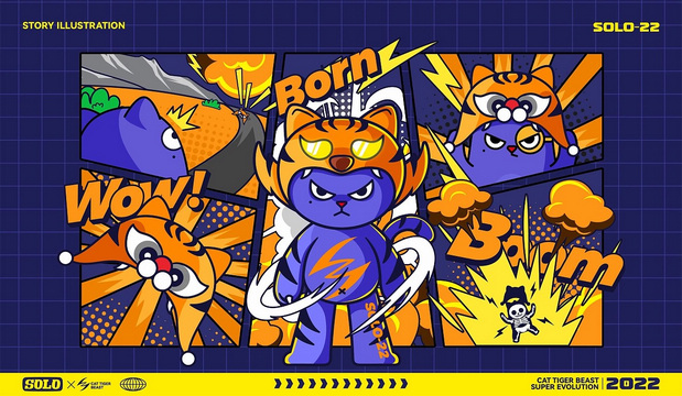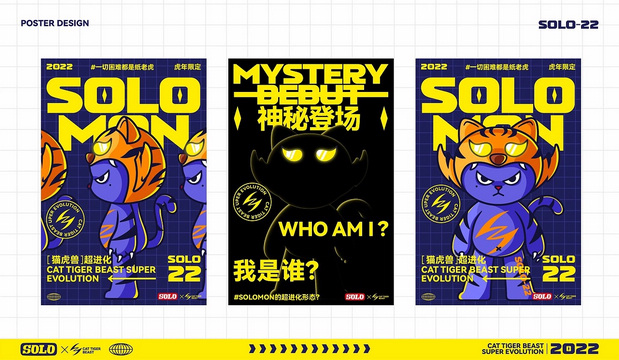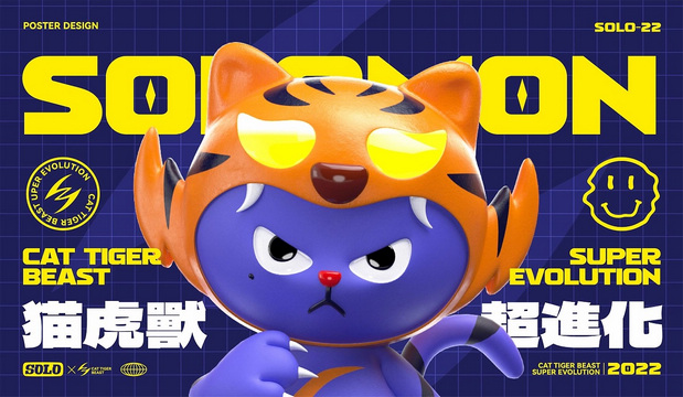 2022适逢虎年,猫虎本同源,于是想到如果以类似《数码宝贝》的世界观,SOLOMON的虎年超进化形态,会是怎样的。经过半小时(可能更长时间)的思索,最后形成思路,并逐步创作了「2022虎年限定」的SOLOMON猫虎兽超进化形态。 跨越新年,一往无前;一切困难都是纸老虎。2022年 愿大家快乐! 设计 │ 致远哥动画 │ 何梓毅 #已注册版权,请勿私自转载挪用,版权归属于SOLO品牌创意