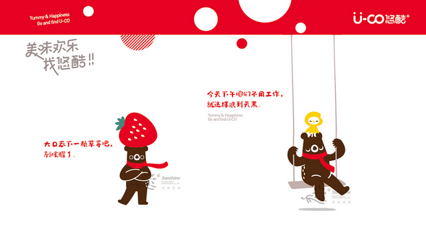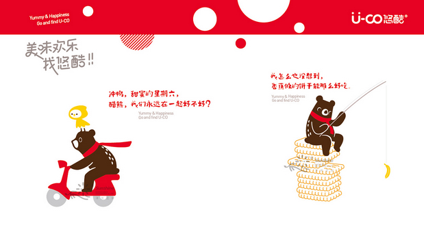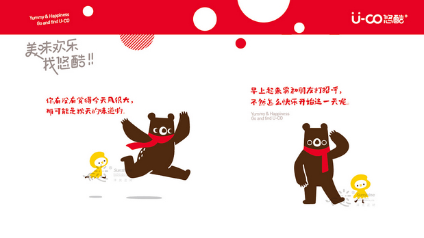 U-co悠酷品牌优化升级设计 /><img fetchpriority= U-co悠酷(休闲零食)品牌优化升级设计, 快乐的感觉是甜,是幸福的,这种欢乐是美好心情迸发出来,给人愉悦感, 红色的气泡歌唱着像跳动的音符;极简又时尚,充满食欲。 熊,是最喜欢吃甜食的动物之一,憨憨的,和它的小伙伴小黄,快乐而来…… 谢谢各位酷友观看……